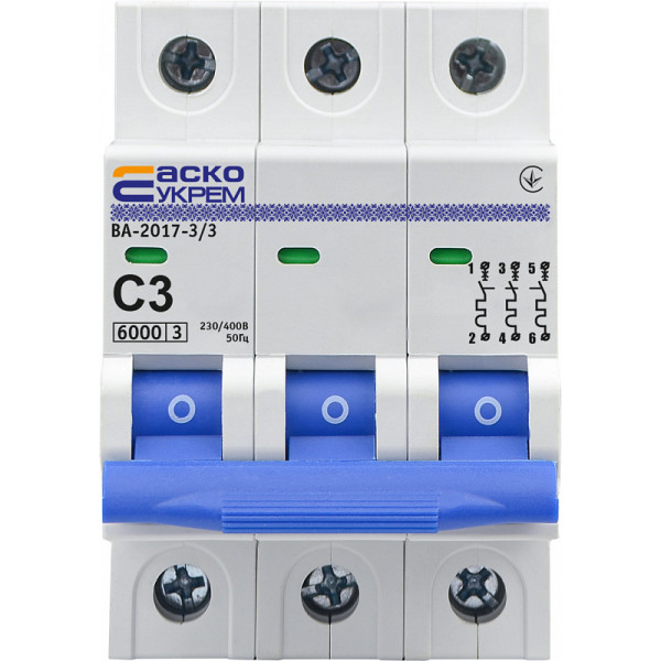 Автоматичний вимикач АСКО-УКРЕМ ВА-2017 3p 3А тип C 6кА (A0010170040)
