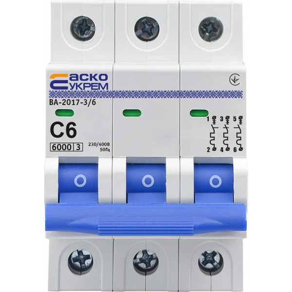 Автоматичний вимикач АСКО-УКРЕМ ВА-2017 3p 6А тип C 6кА (A0010170019)