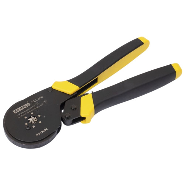 Кліщі для обтиску наконечників REL 816 (HB, EN, 0,08–16 мм²) Reliance — професійний інструмент преміум-класу для якісного та рівномірного обтиску втулкових (трубчастих) наконечників під один або два проводи. Модель REL 816 оснащена посиленим шестигранним механізмом нового покоління, що забезпечує максимально надійний контакт, довговічність та відповідність сучасним стандартам кабельного монтажу. Завдяки розширеному діапазону обтиску — до 16 мм² — інструмент універсальний для побутових, промислових та сервісних робіт.