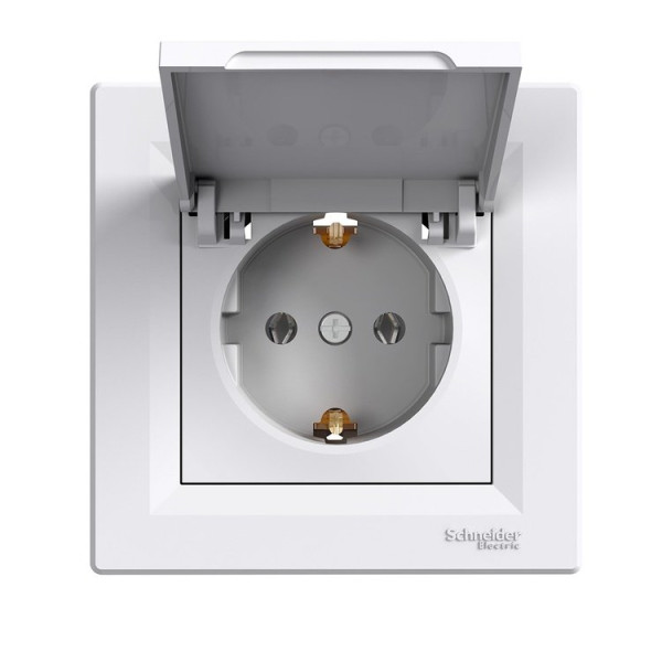 Розетка Schneider Electric Asfora із заземленням і кришкою Біла (EPH3100121)