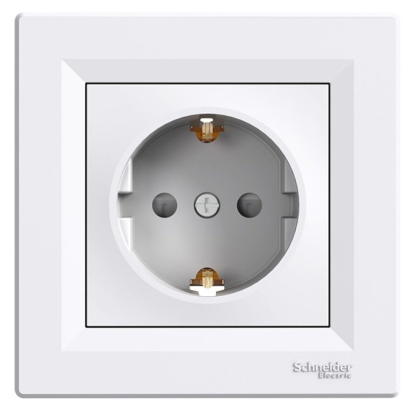 Розетка Schneider Electric Asfora із заземленням і шторками Біла (EPH2900221)