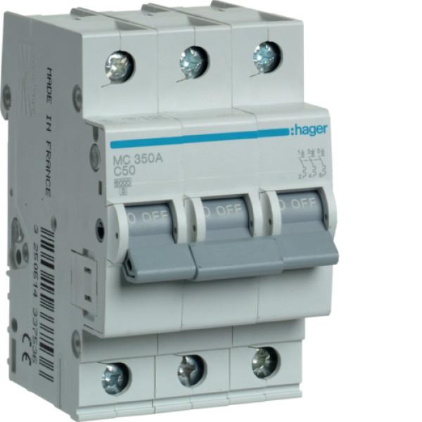 Автоматический выключатель HAGER 3Р 50 А тип С (MC350A)