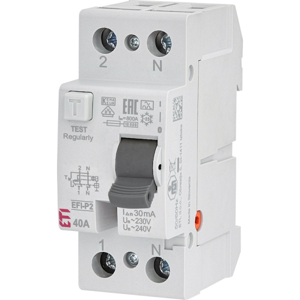 Дифференциальное реле (УЗО) ETI 2р EFI6-P2 40А 30mA тип AC (2061252)