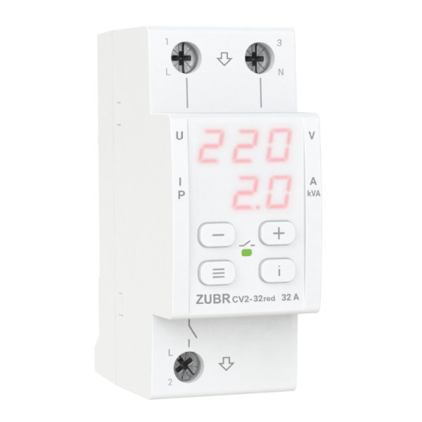 Реле напряжения с контролем тока ZUBR CV2-32 red 32A