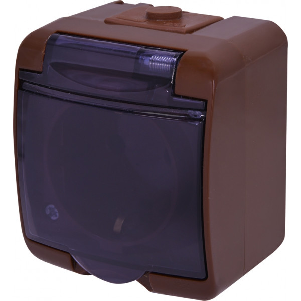 Розетка одинарная с защитной крышкой с з/к ETI HERMETICS RHE-1sd-KR IP54 коричневая (4668051)
