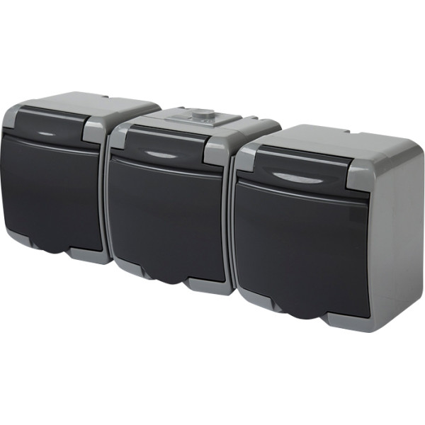 Розетка тройная с защитной крышкой с з/к ETI HERMETICS RHE-3s-SRG IP54 серо-графитовая (4668108)