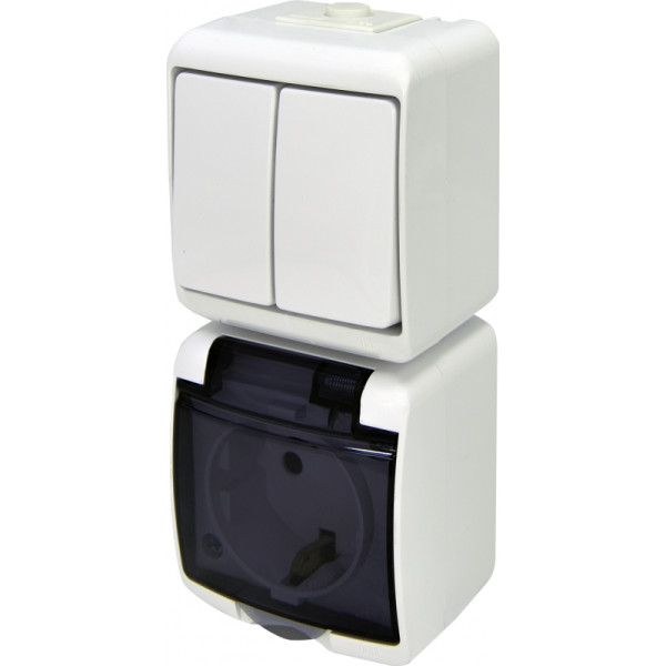 Розетка+выключатель 2-клавишный ETI HERMETICS VRHP-2sd Белый (4668028)