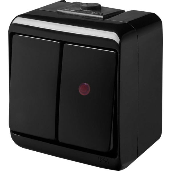 Выключатель 2-клавишный с подсветкой ETI HERMETICS VHE-2L-BL IP54 черный (4668087)