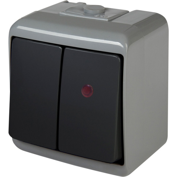 Выключатель 2-клавишный с подсветкой ETI HERMETICS VHE-2L-SRG IP54 серо-графитовый (4668103)